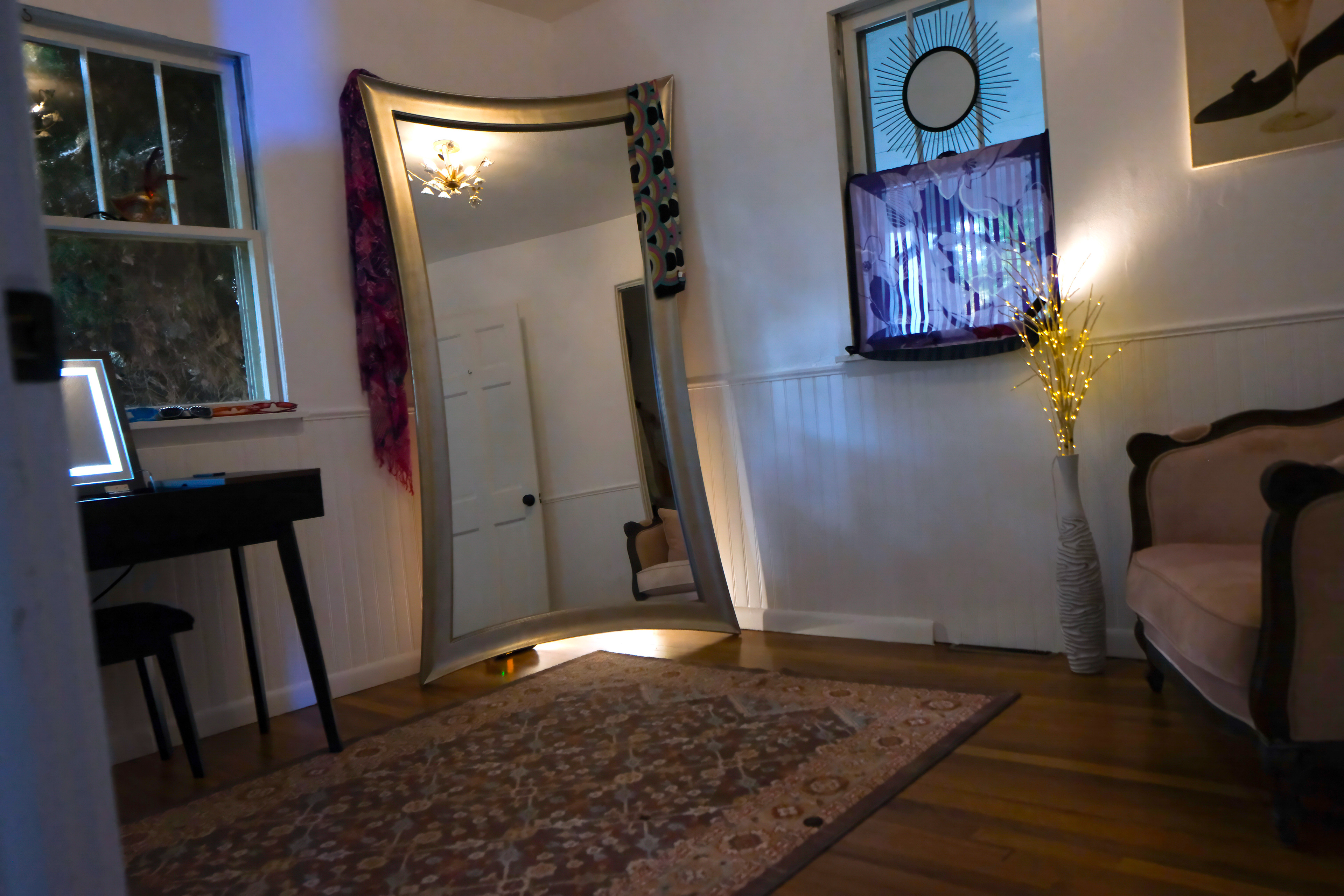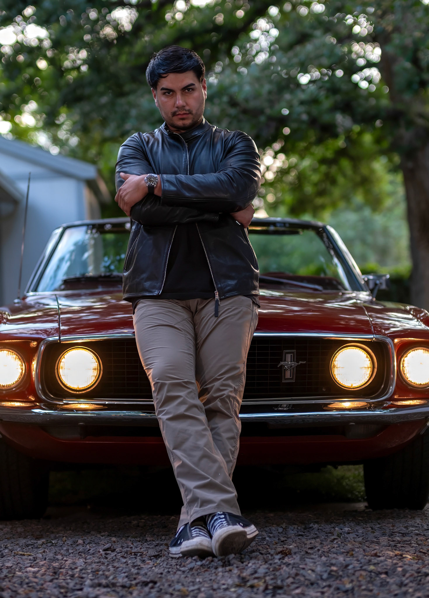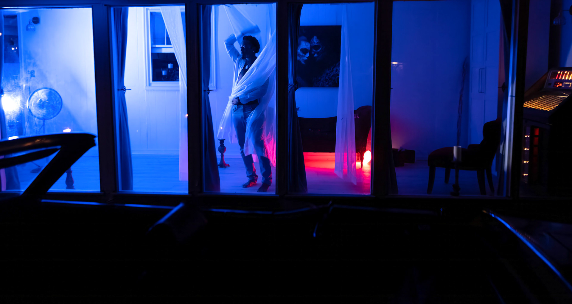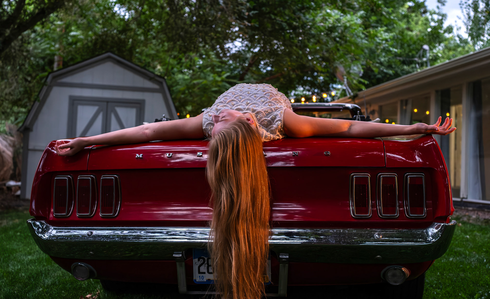 Lūmen isn’t a blank backdrop — it’s a curated collection of rooms and textures. There’s a glass-lined sunroom that changes with the light. A dressing room filled with vintage pieces. A backyard framed by towering trees — and even a red ‘69 Mustang if you're in the mood for something cinematic.